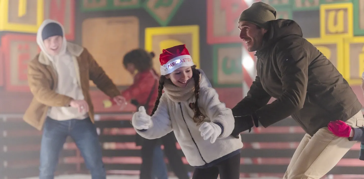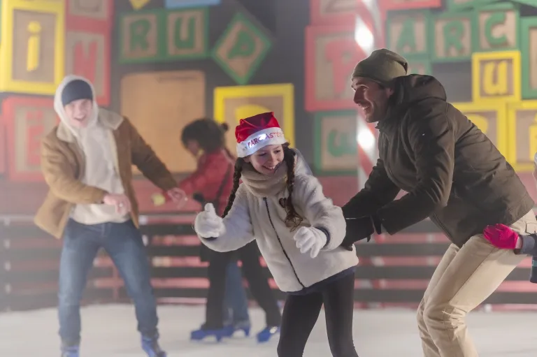 Patins gratuits, port de gants conseillé sur la patinoire.