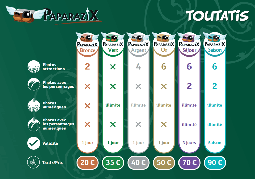 (La vente du Pass Paparazix se fait uniquement aux caisses d'entrées du Parc.)